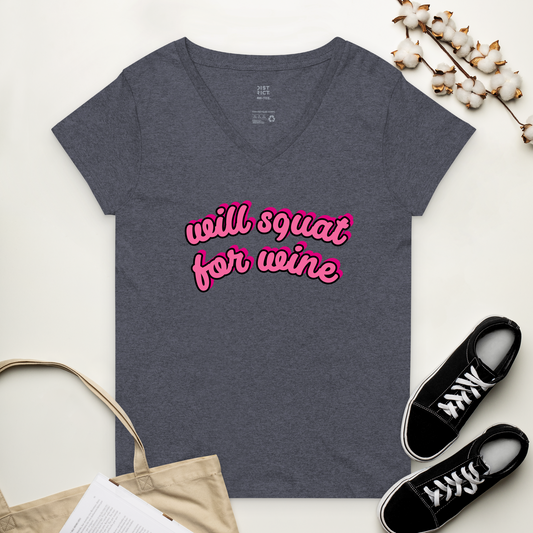 Sold out"squat for wine" v-neck tee